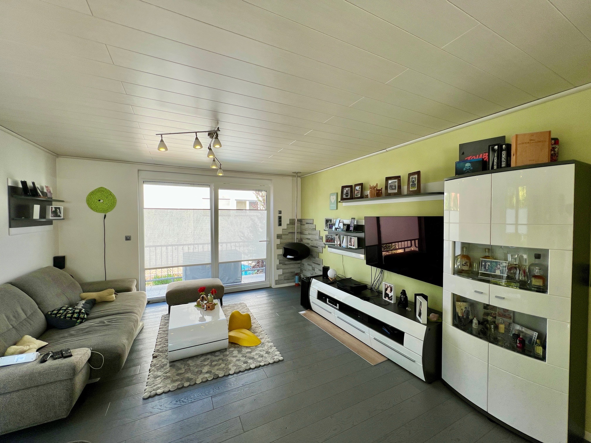 - Offener Wohn-Essbereich mit Design-Ethanol-Ofen und Zugang zum Westbalkon