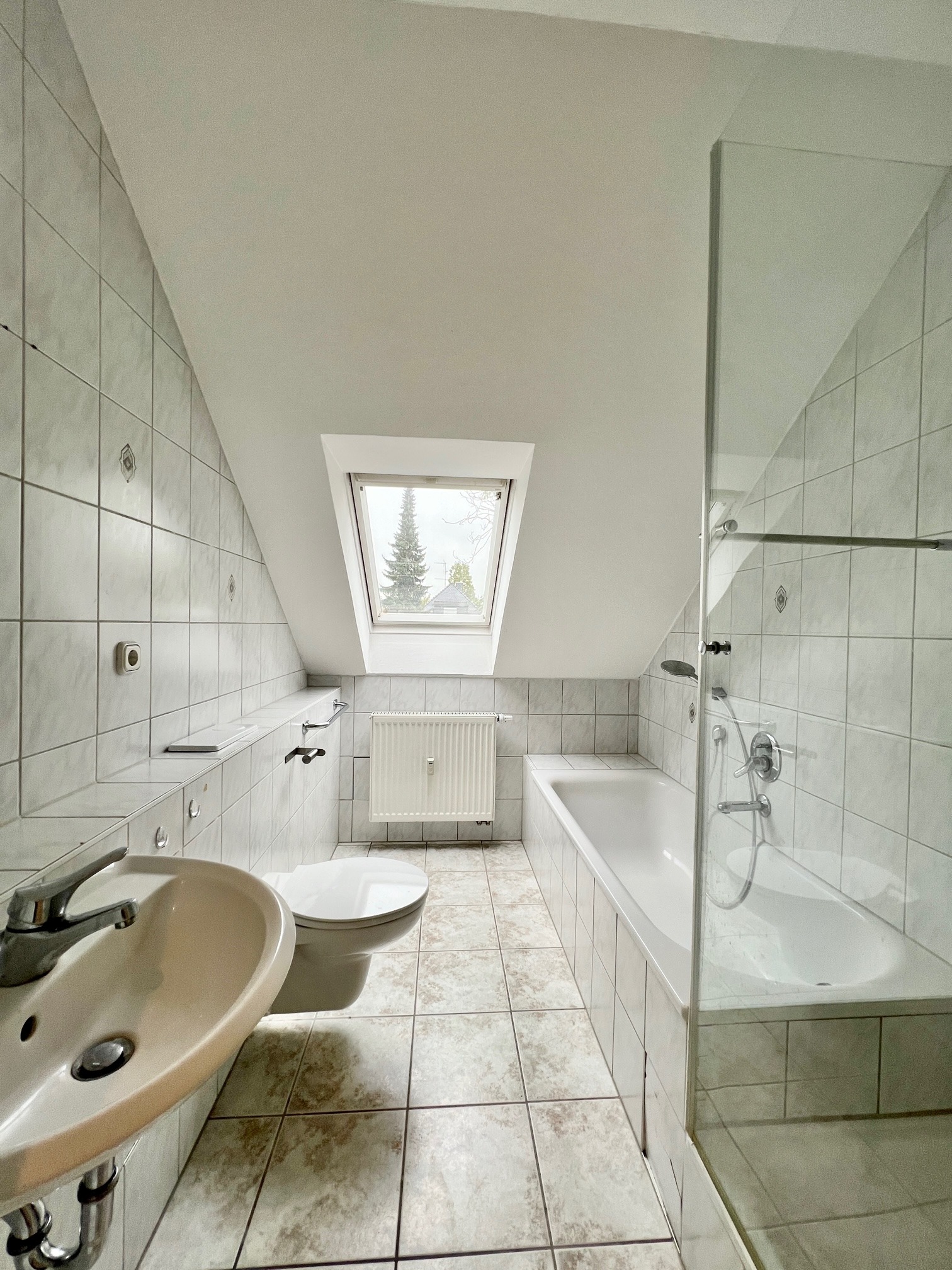 - Bad mit Fenster, Dusche, Badewanne und Waschtisch