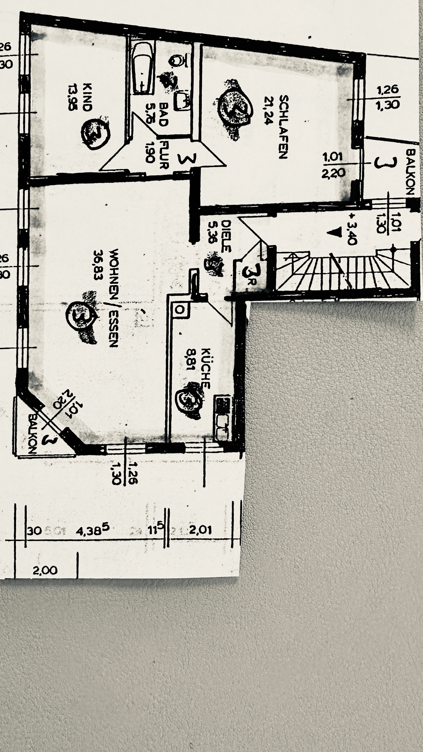 * außergewöhnlich gut geschnittene 3-Zimmer-Wohnung