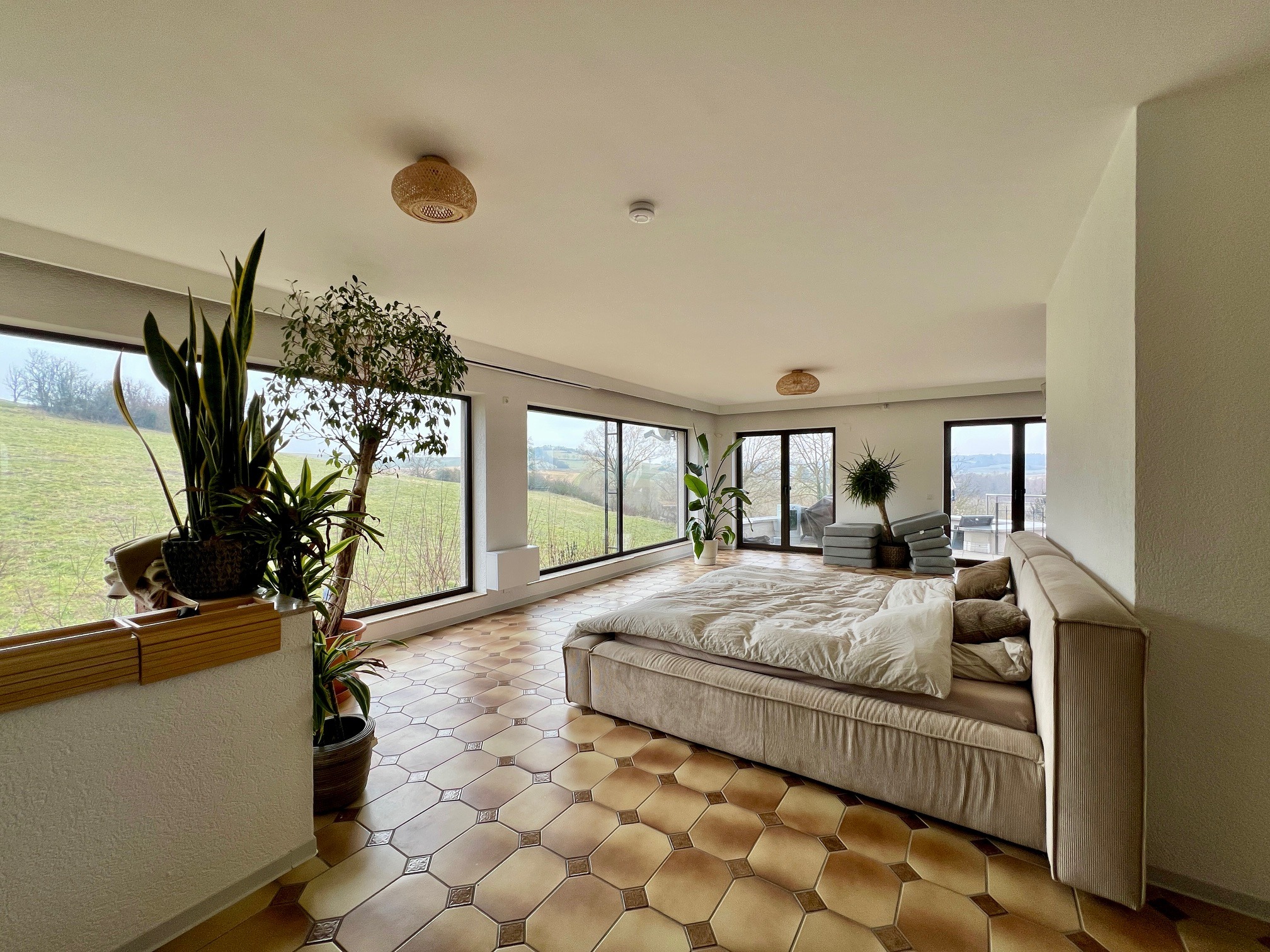 Diese interessante Wohn-Location erwartet Sie in ruhiger Ortsrandlage mit herrlichem Blick ins "Grüne" sowie über Ueberau und Reinheim. Lichtdurchflutete Räume sorgen für ein besonderes Wohn- oder auch Arbeitsambiente. Auf einer Ebene stehen Ihnen ca. 200 m² Wohnfläche zur Verfügung. Ideal für Paare oder auch eine kleine Familie, zur Nutzung als Atelier oder auch für Freiberufler zum Wohnen und Arbeiten.